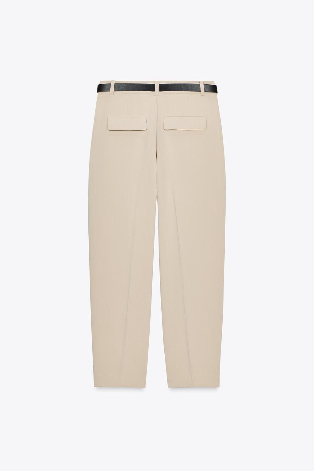 شلوار پنسیلی کمردار رنگ بژ