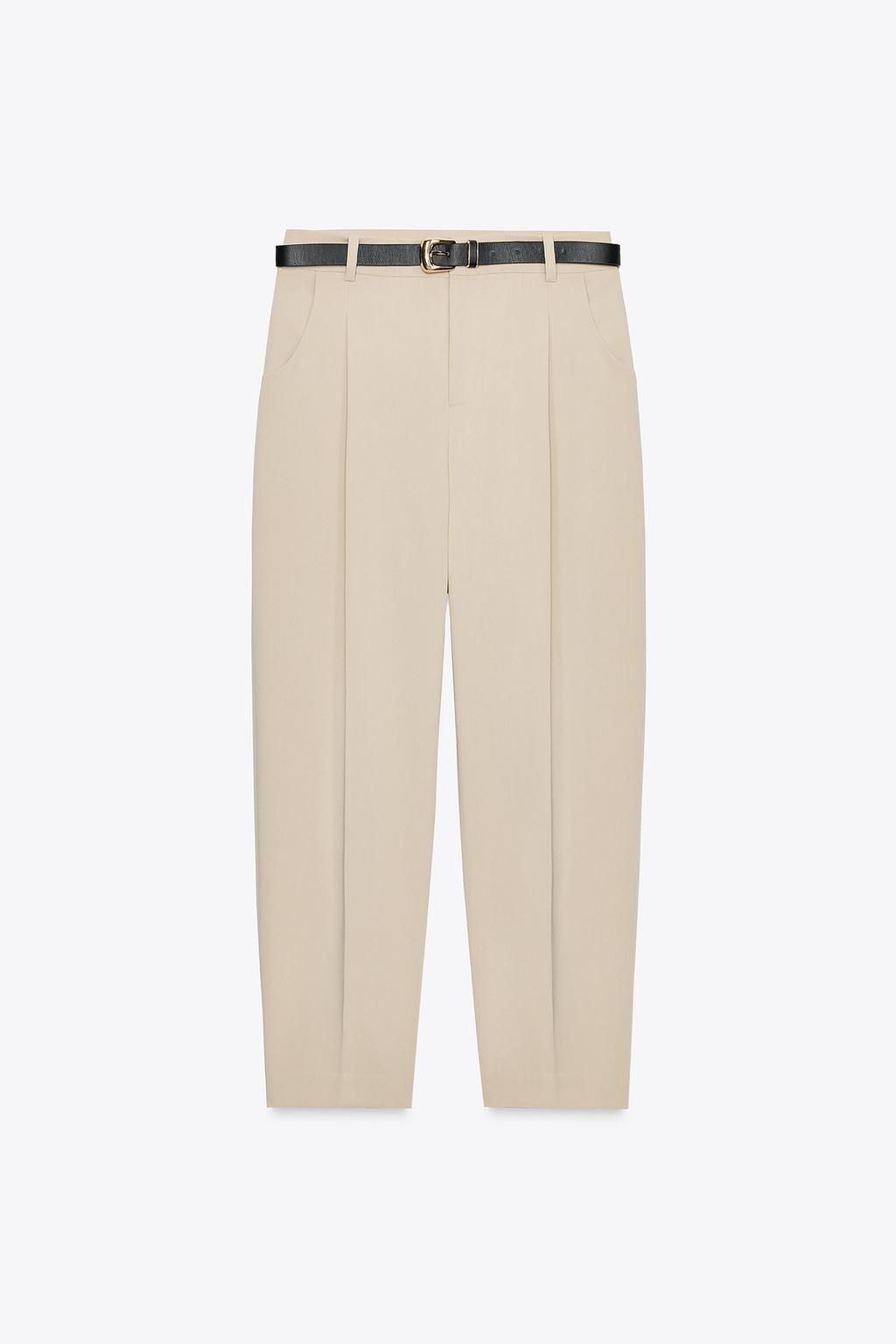 شلوار پنسیلی کمردار رنگ بژ